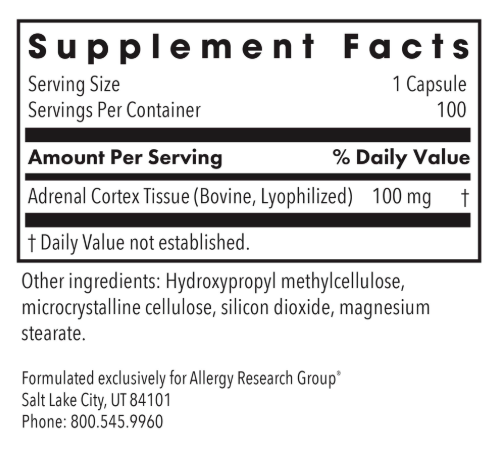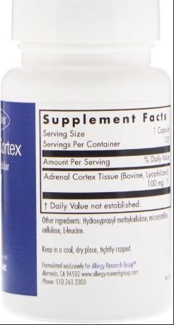 Provides tissue from the cortex portion of the adrenal gland. This natural glandular material is derived from cattle born and raised in Argentina, a country free from Bovine Spongiform Encephalopathy (BSE).