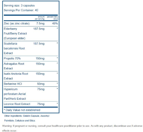 ViraCon is a powerful combination of immune supporting herbal extracts featuring Elderberry, a rich source of antioxidant flavonoids.* Viracon’s unique blend of botanical extracts, Berberine and 7.5mg of Zinc per serving work synergistically to support the body’s natural defenses, by helping cytokine production and other important immune factors.* This gentle vegetarian formula also helps promote normal respiratory function and energy, and is a must for everyone’s home during times of seasonal challenges.*