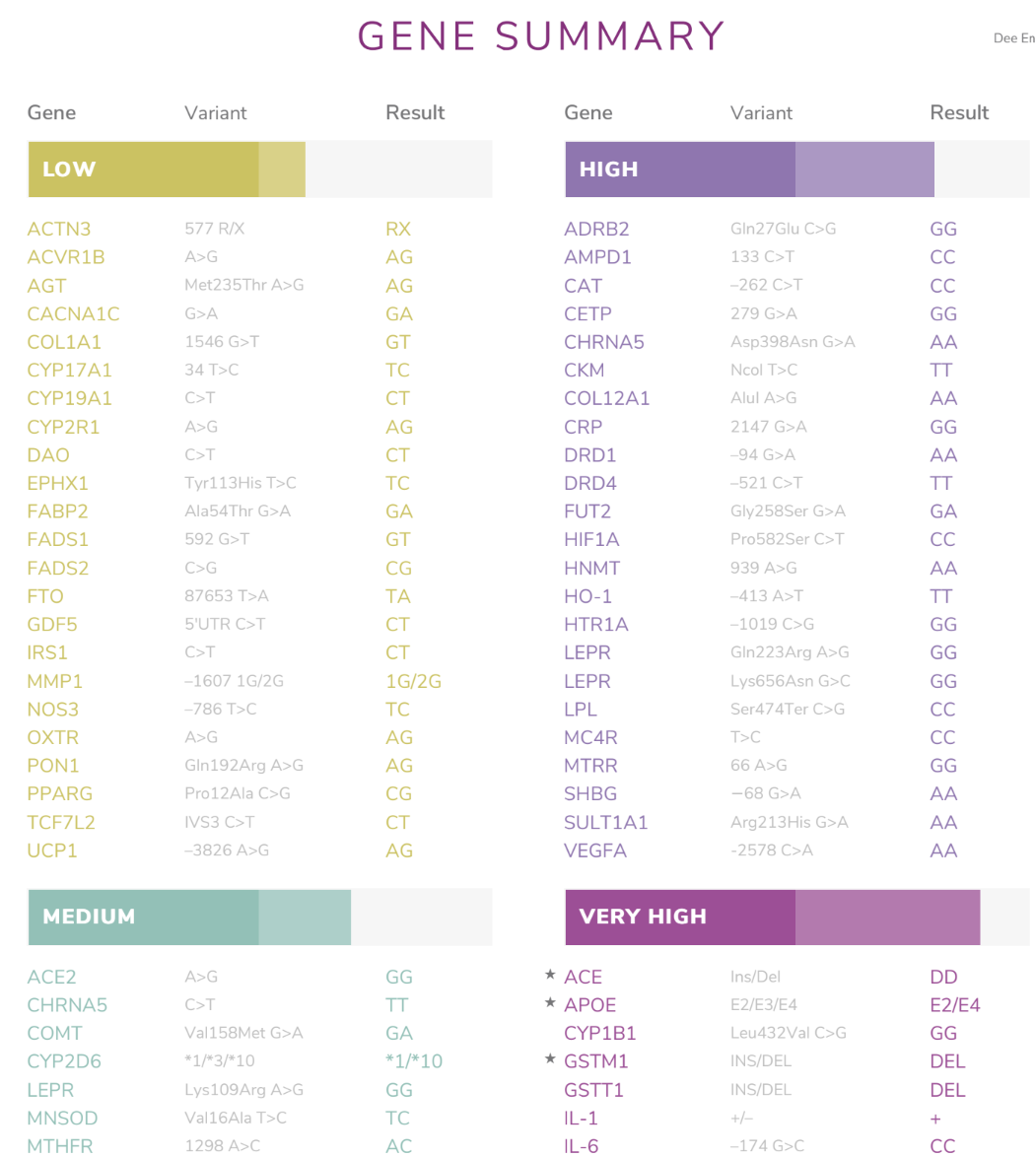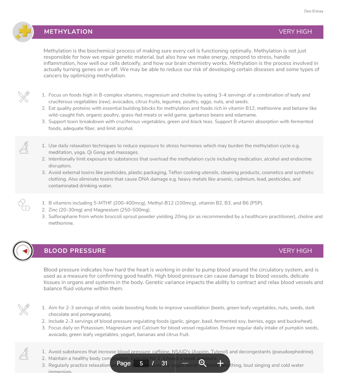 Sample Report The 3X4 Genetics Test + Blueprint Report is a comprehensive evaluation providing 36 key insights for practical, personalized recommendations.