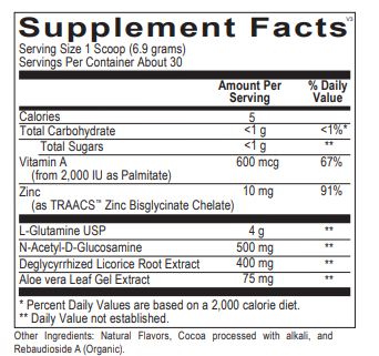 A healthy GI tract has an epithelial mucosal barrier that prevents the passage of food antigens (proteins), toxins, and microorganisms from crossing into the bloodstream. Stress, overconsumption of alcohol, food intolerance, microbial imbalance and poor nutrition can affect the integrity of the epithelial barrier. The health of the GI tract is dependent on the modulation of these factors. The ingredients help regenerate and maintain GI enterocytes while supporting the health of the intestinal mucosal barrier.