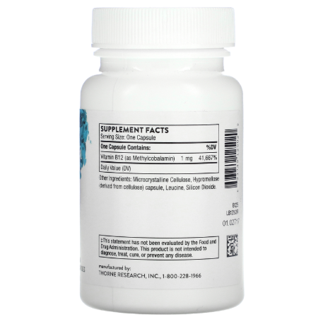 Many vitamin B12 supplements contain cyanocobalamin as the active ingredient, which the liver must first ""detoxify"" and modify to form methylcobalamin – an active form of vitamin B12 that is essential for processes involved in cardiac function, sleep, red blood cell formation, and nerve function.* Thorne's Methylcobalamin provides vitamin B12 in its already biologically active and tissue-ready form.* Clinical evidence indicates that the body uses methylcobalamin more efficiently than cyanocobalamin.*