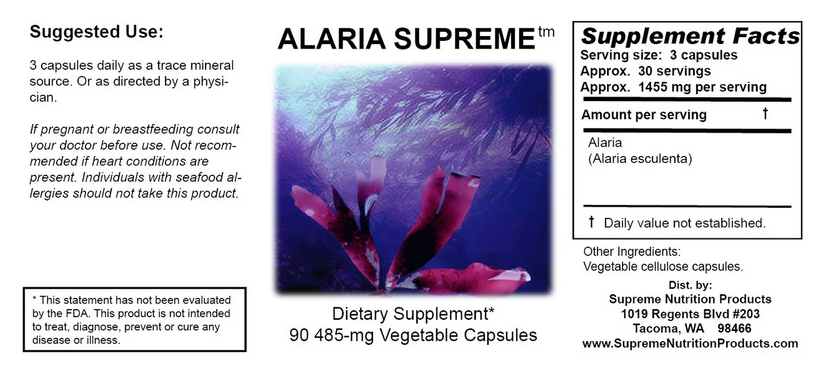 Alaria has a significant amount of trace minerals. Two capsules will give you your RDA of organic iodine as well as smaller but significant amounts of most vitamins and minerals. It has the most significant amounts of calcium, magnesium and B-vitamins of any edible seaweed. Being a whole food ground into a powder it has all the co-factors, phyto-nutrients, etc. you would expect to find in a “superfood” without the downside of the algae, grass juices, alfalfa, etc. which are common allergens. Studies have also shown it to act as an immune stimulant and binder/detoxifier for heavy metals in the GI tract.*