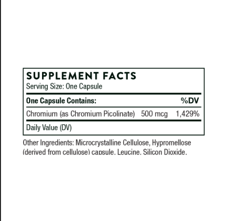 Chromium Picolinate provides chromium that is often lacking in daily diets. Refined flour and refined sugar is significantly depleted of chromium. In addition, metabolic stress, strenuous exercise, and pregnancy can all increase chromium needs. Studies suggest chromium helps maintain already normal glucose levels and insulin sensitivity and can assist in healthy weight management.* Thorne's Chromium Picolinate provides chromium that is bound to picolinic acid, which facilitates its absorption.*