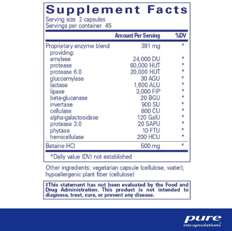 Our most comprehensive blend of vegetarian digestive enzymes; support for protein, carbohydrate, fat, fiber and dairy digestion*.