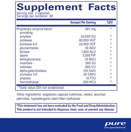 Our most comprehensive blend of vegetarian digestive enzymes; support for protein, carbohydrate, fat, fiber and dairy digestion*.