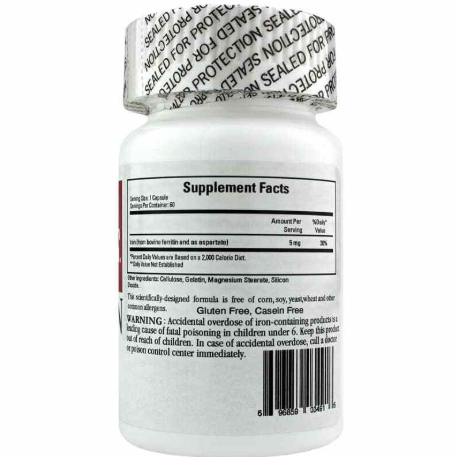 Ferritin Fe 5 mg by Ecological Formulas is a dietary supplement designed to supply the body with the bioavailable supply of iron it needs to produce hemoglobin for the proper transportion of oxygen throughout the body.* One of the key ingredients in Ferritin Fe 5 mg by Ecological Formulas is ferritin, the protein and natural derivative of bovine spleen responsible for enabling the body to store iron. The supply of iron provided by this supplement is the most bioavailable form possible to ensure easy absorption, without upsetting the stomach or GI tract.