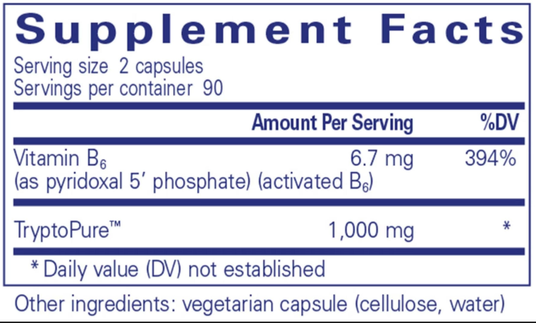 In a separate study, it supported healthy mood and lessened occasional irritability during the menstrual cycle. l-Tryptophan also supports healthy sleep quality, onset and duration. Additional research suggests that tryptophan may promote relaxation and help control occasional cravings. Vitamin B6 provides enhanced support as important cofactors involved in the metabolism of l-tryptophan.*