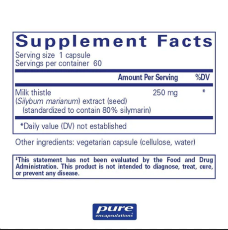 Silymarin is a milk thistle extract that nutritionally supports liver function. This highly active botanical protects the liver from free radical damage, supports glutathione concentrations and promotes superoxide dismutase activity. Milk thistle extract also stimulates protein synthesis in hepatic cells*