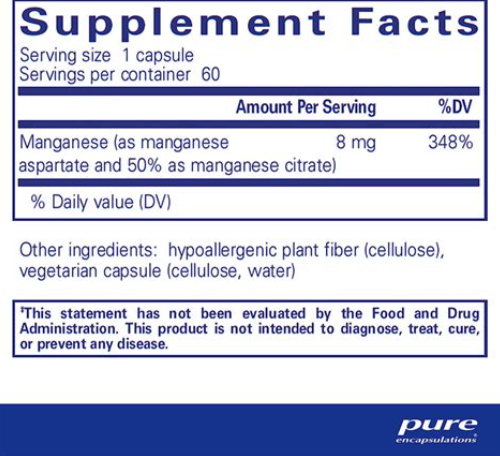El manganeso activa numerosas enzimas necesarias para la utilización de la biotina, la tiamina y el ácido ascórbico. Es un catalizador en la síntesis de ácidos grasos y colesterol, y participa en la producción de proteínas, carbohidratos y grasas. El manganeso es necesario para el desarrollo esquelético normal y el mantenimiento del tejido estructural conectivo y la integridad celular. Además, influye en la síntesis de mucopolisacáridos y es un cofactor necesario en la desintoxicación del amoníaco a urea.*