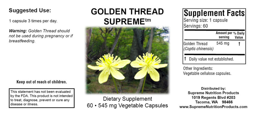 Golden Thread contains berberine, the component that gives goldenseal, coptis, and oregon grape root their yellow/gold color, bitter taste and some of their therapeutic effects. In China it has been used to treat infantile dysentery, Trichomoniasis, diphtheria, scarlet fever, tuberculosis, typhoid fever, tonsillitis, eczema, type II diabetes and ventricular extra systole*. Many people find it works great for acute and chronic infections*.