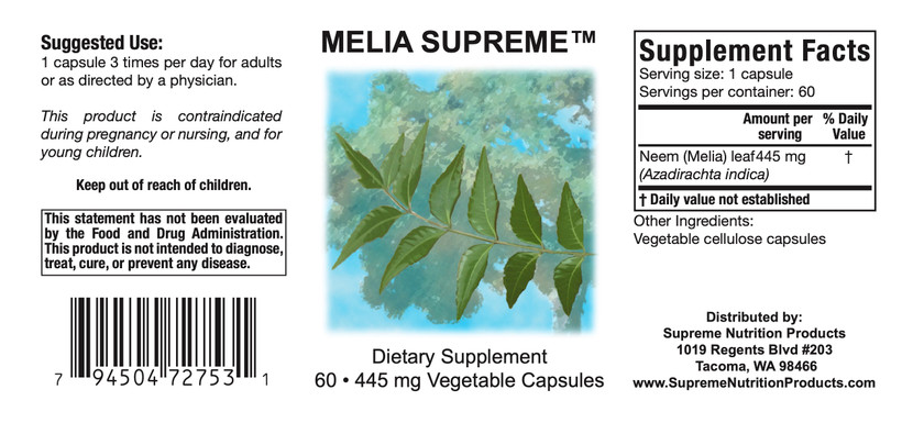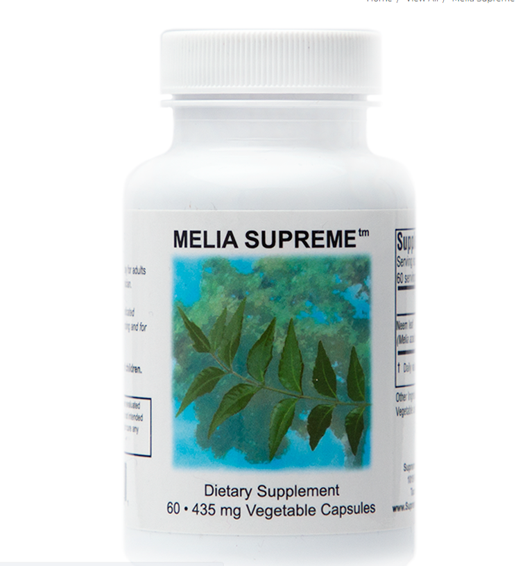 The word neem (Melia) is reported to come from the Sanskrit language and roughly means “the healer and illness reliever”. It is a superb broad spectrum anti-microbial showing effectiveness against various fungi, bacteria, parasites, virus (including herpes), and spirochete*s. It has also been reported that it does not harm beneficial intestinal flora*.